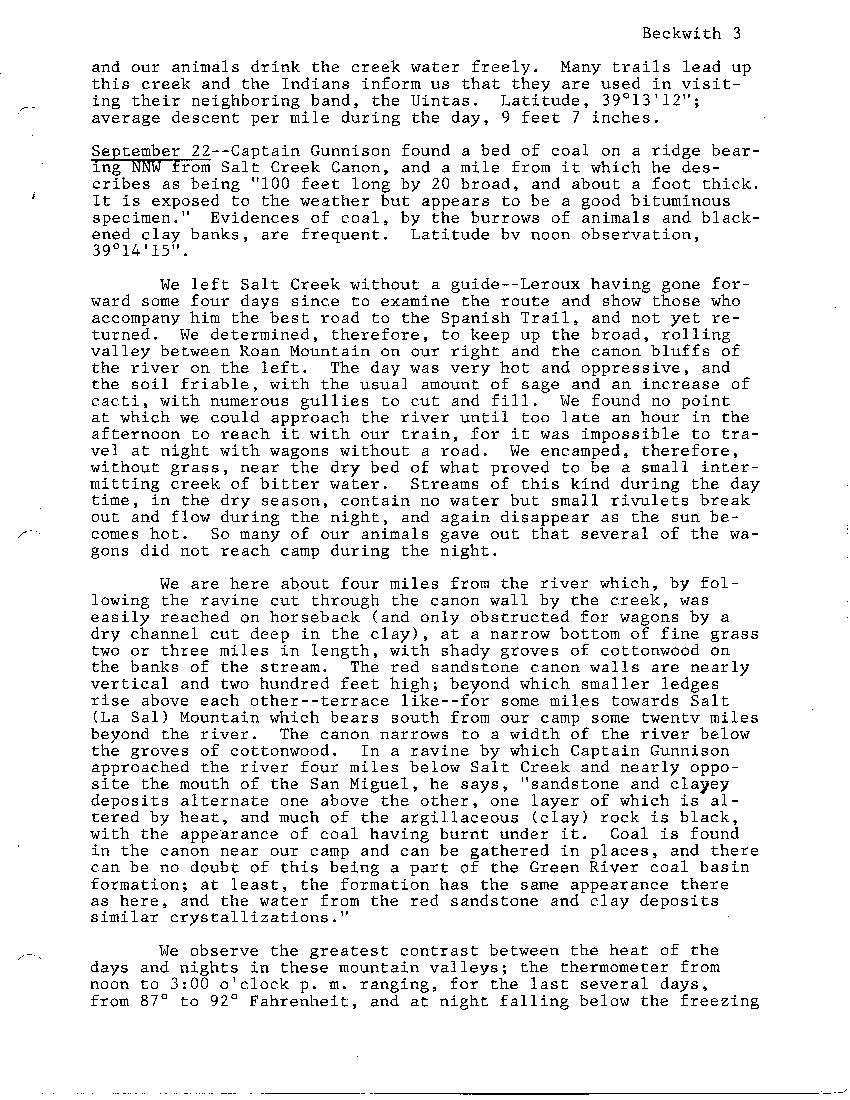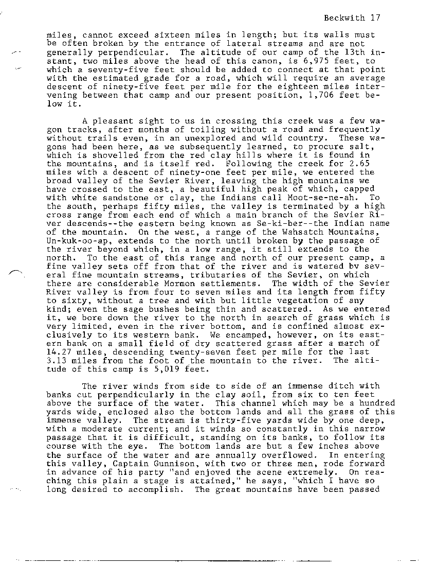 - Reports, Explorations and Surveys to Ascertain the Most Practicable and Economical Route for a Railroad from the Mississippi River to the Pacific Ocean . . . . (Captain J.W. Gunnison) Lieutenant E.G. Beckwith
