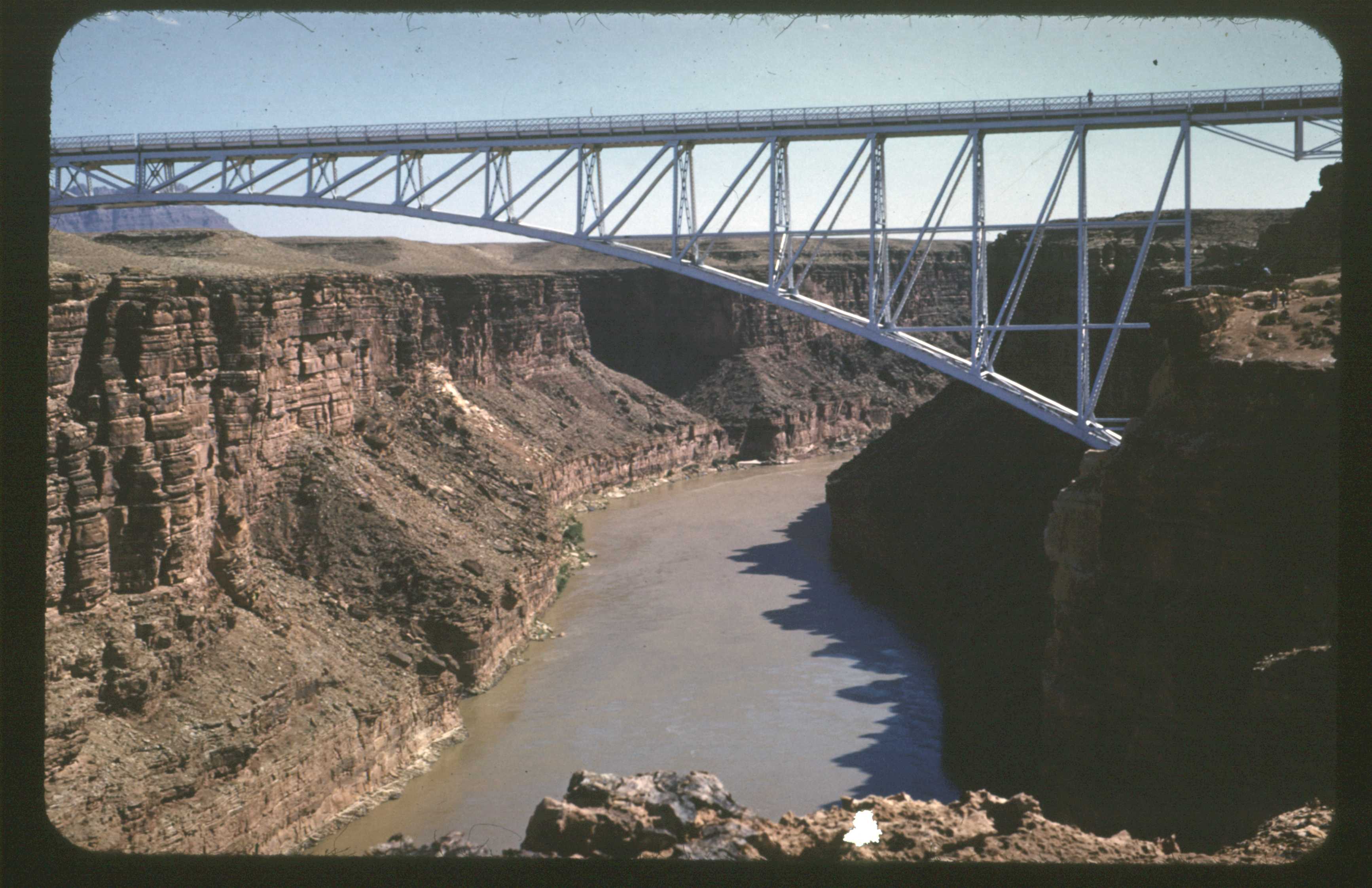 01-08.jpg Text: (Kodachrome red 36): "10" The highway bridge across the Colorado. Soon the party will pass under this bridge.