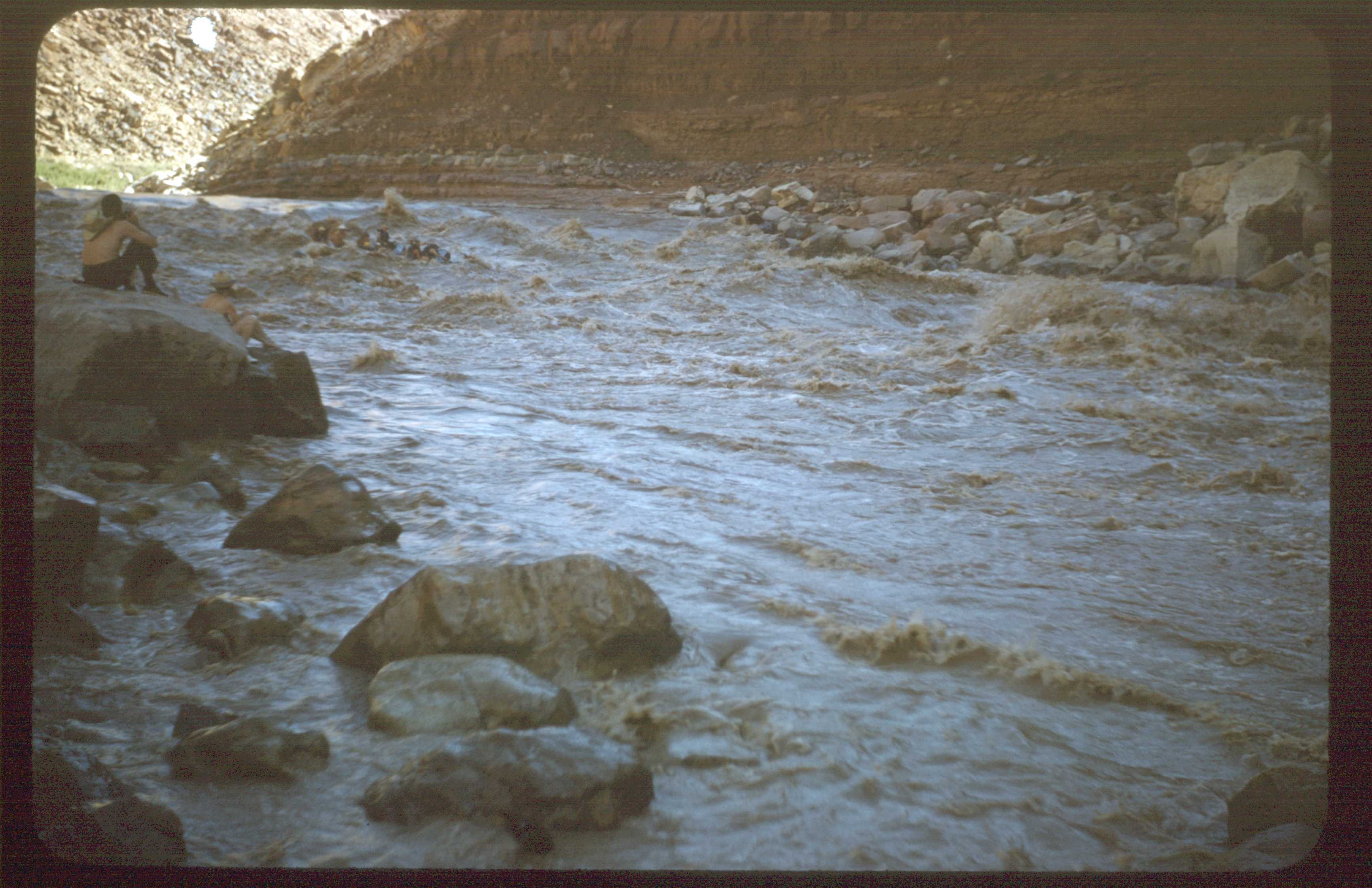 01-25.jpg Text: (Kodachrome red 6): "27" Here comes one of the small rafts through the rapid.