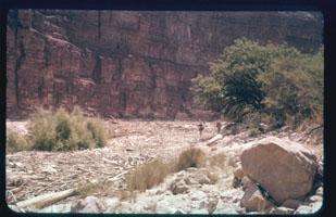 04-11.jpg 04-11.jpg Text: (Ektachrome): First glimpse of the suspension bridge at Phantom Ranch.