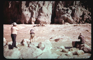 04-19.jpg 04-19.jpg Text: (Ektachrome): Some of the party were leaving the trip and phantom ranch, and taking the mule-back trip to the rim.