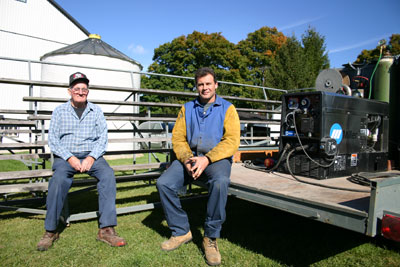 | Father and son team Murry (left) and Doug Thompson designed and fabricated this portable bleacher using Miller welding equipment. For mobile fabrication, the multiple process capabilities of their trailer-mounted Trailblazer 301G allow them to tackle any welding task. |